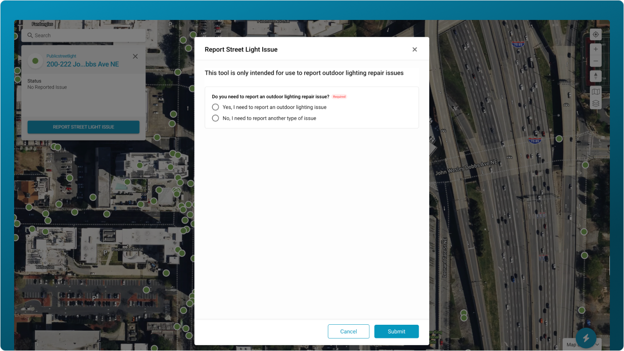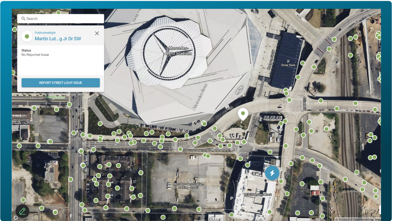 Georgia Power deployed the TerraGo community engagement solution, featuring a public streetlight outage reporting portal. Seamlessly integrated with the Georgia Power website, customers can instantly report a streetlight out from any computer or mobile device. They can also sign up to get status updates until the problem is fixed. Since the TerraGo software also integrates smart controls on 400,000 lights, many of the outages have already been detected and restoration is underway. The TerraGo software also prevents duplicate reports once an outage is detected or reported. The result – a reduction of over 100,000 phone calls to the customer care center since the outage site was launched in April 2024. Most importantly, surveys confirm the clear improvement of customer satisfaction since the launch of the tool.